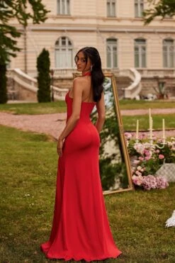 The Ambel Gown is designed to frame and flatter the silhouette. This style features a plunging v-neckline, front slit and a navy tone for a minimalistic yet stylish look. Rendered from a soft satin fabric for added simplicity. The Ambel Gown is so classic.
