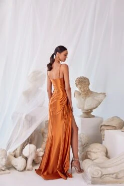 In a bright vibrant hue, the Analu Dress was made to make a statement. This style has a bust cut-out with an adjustable drawstring, long-off shoulder angel sleeves, and gathered detailing at the bodice. This pleated fabric is so luxurious.