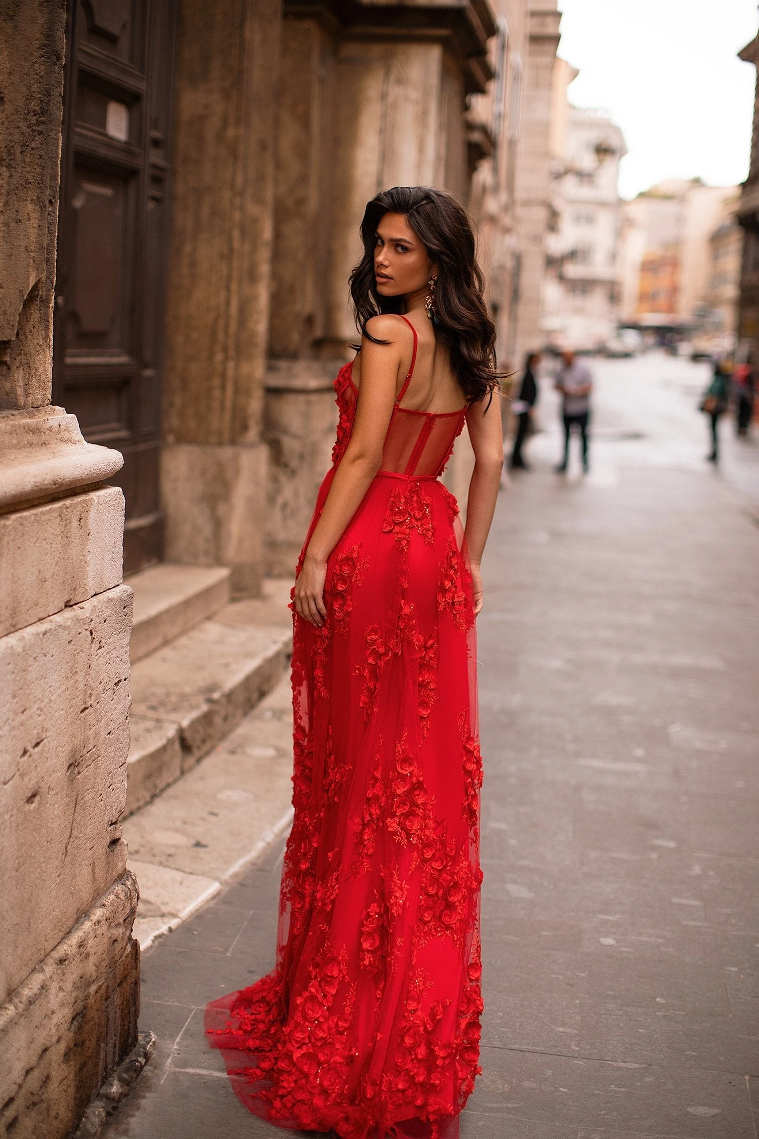 The most gorgeous gown ever, the Clarina Gown is so dreamy & will make you stand out from the rest. Show-stopping & complete with a gorgeous sheer bustier & floral embellishments all over. Lined to the hem and a flowing a-line fit to make every girl look flawless.