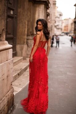 A minimalist aesthetic allows all the focus to fall on you in the Evelyn Gown. Structured with a boned bodice, thick straps & a body-hugging silhouette. Rendered in a baby pink satin fabric for a romantic appeal.