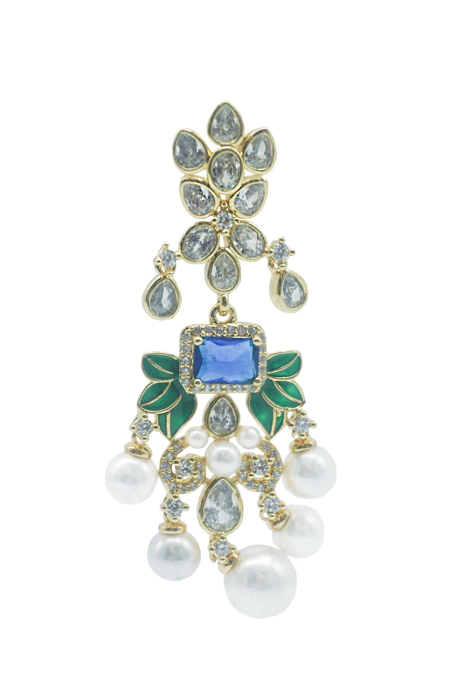 Elegant & chic, the Jolie Earrings add a touch of class to your look. Made from stylish gold hardware and adorned with emerald and navy gems and silver diamantes. Finished with a delicate pearl bottom, these earrings will complete almost any look perfectly.