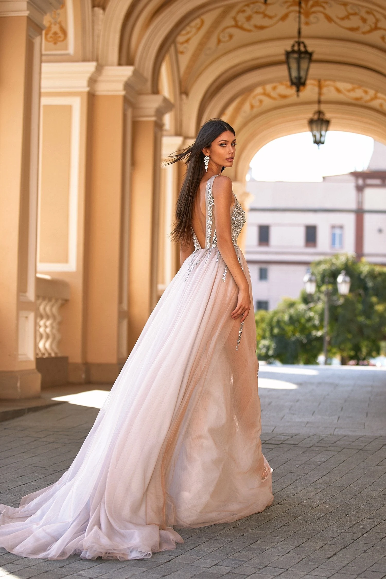 You can customise this gown to suit your personal style. Customisations include changing the neckline, changing the back, customising the gown to a different colour, adding additional length to the train and more. Please email customer care