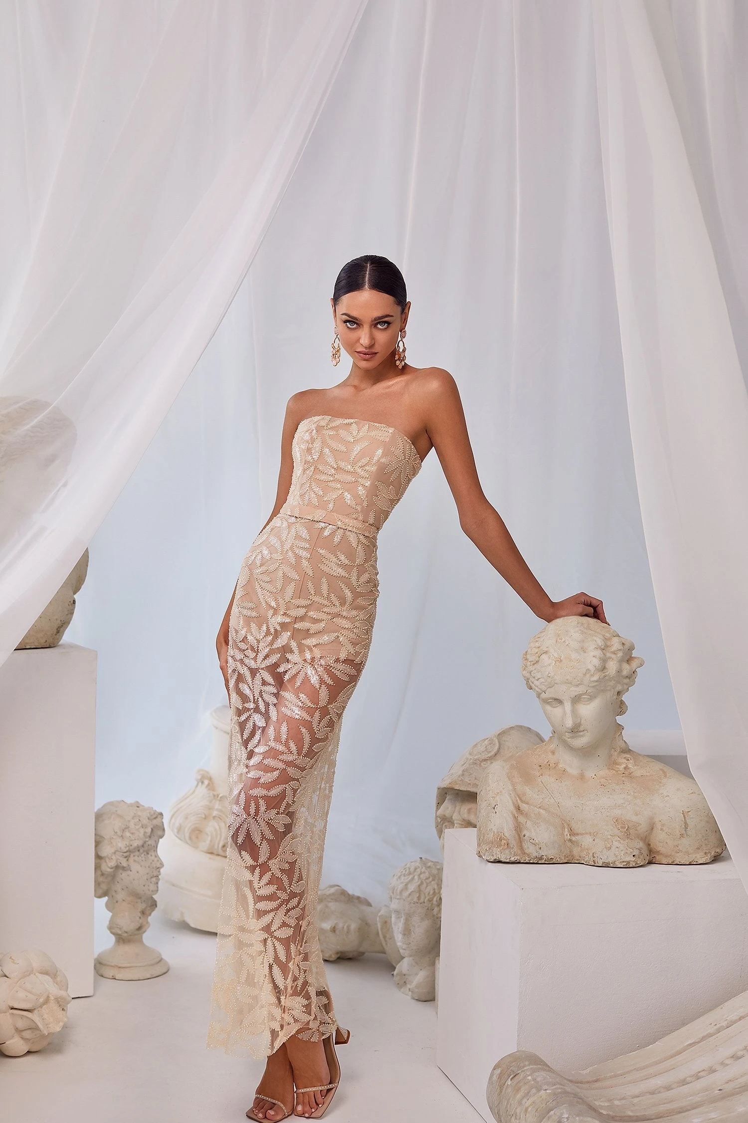 The Mia Dress brings an essence of femininity to your formal wear. This chic design was crafted with a classic strapless neckline, intricate detailing in the beaded sequin fabric, and a straight-fitted silhouette. Romantic and alluring, the Mia Dress will leave a lasting impression.